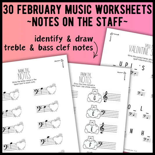 Valentine's Day NOTE NAMING Music Worksheets