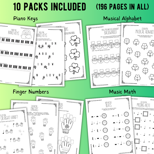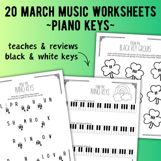St. Patrick's Day PIANO KEYS Music Worksheets