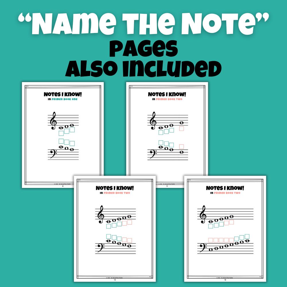 "Name the note" pages as well as "Draw the note" pages are also included.