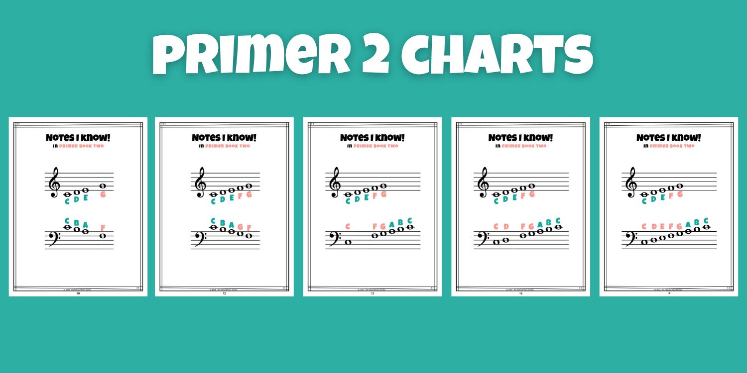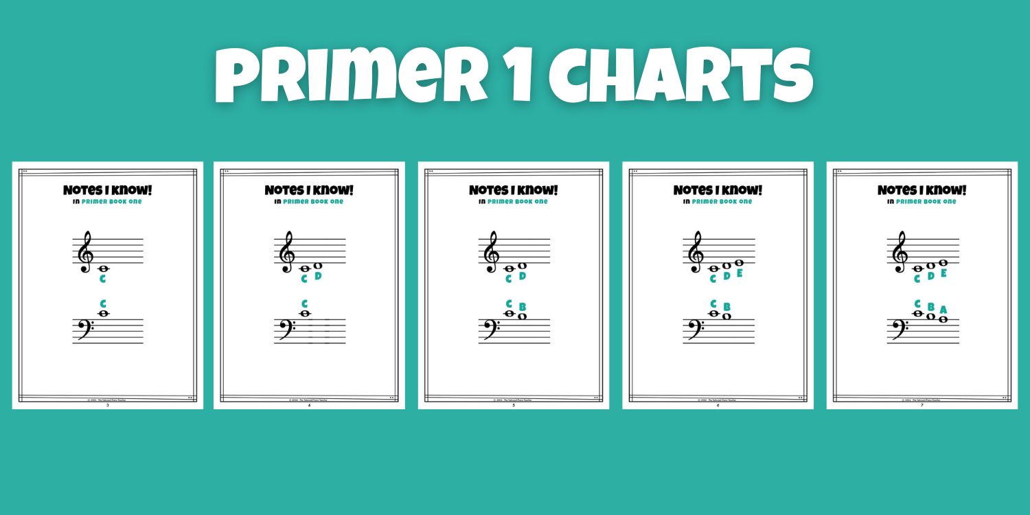 Primer Level Note Charts are a great way to build confident note readers from their first note on the staff to learning the ten notes of the C Scale.