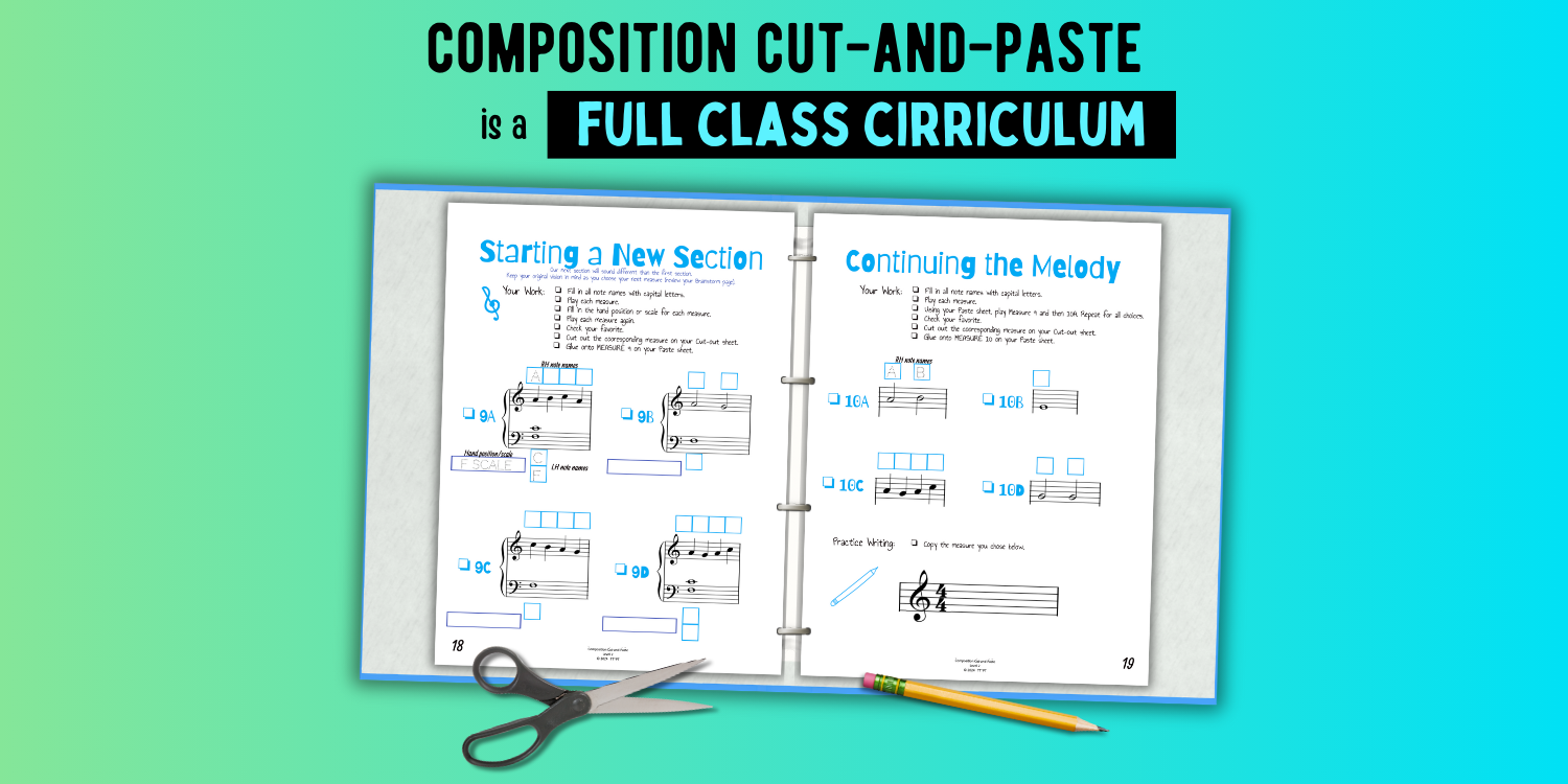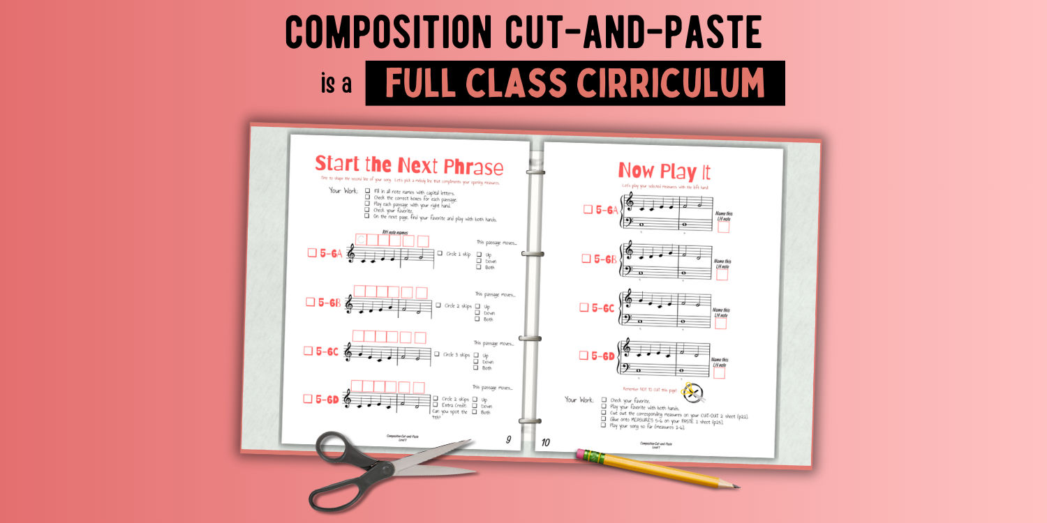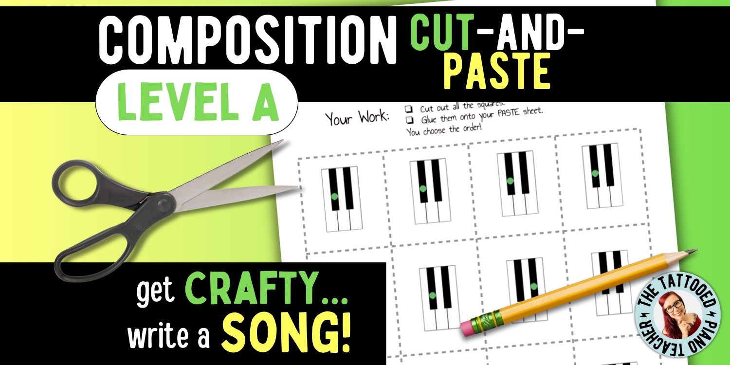 Composition Cut-and-Paste is a scaffolded, teacher-tested composition system that makes composing approachable, engaging, and successful for every level of piano student. Instead of staring at a blank staff, students choose from guided musical options...building confidence, reinforcing theory, and creating music they’re genuinely proud of.