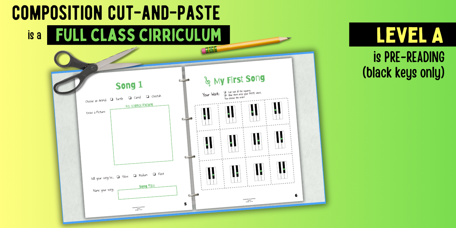 Music Composition Cut-and-Paste Workbook Bundle | Early Elementary to Early Intermediate Class Workshop Curriculum for Composing a Song on the Piano | Pre-reading through Level 4