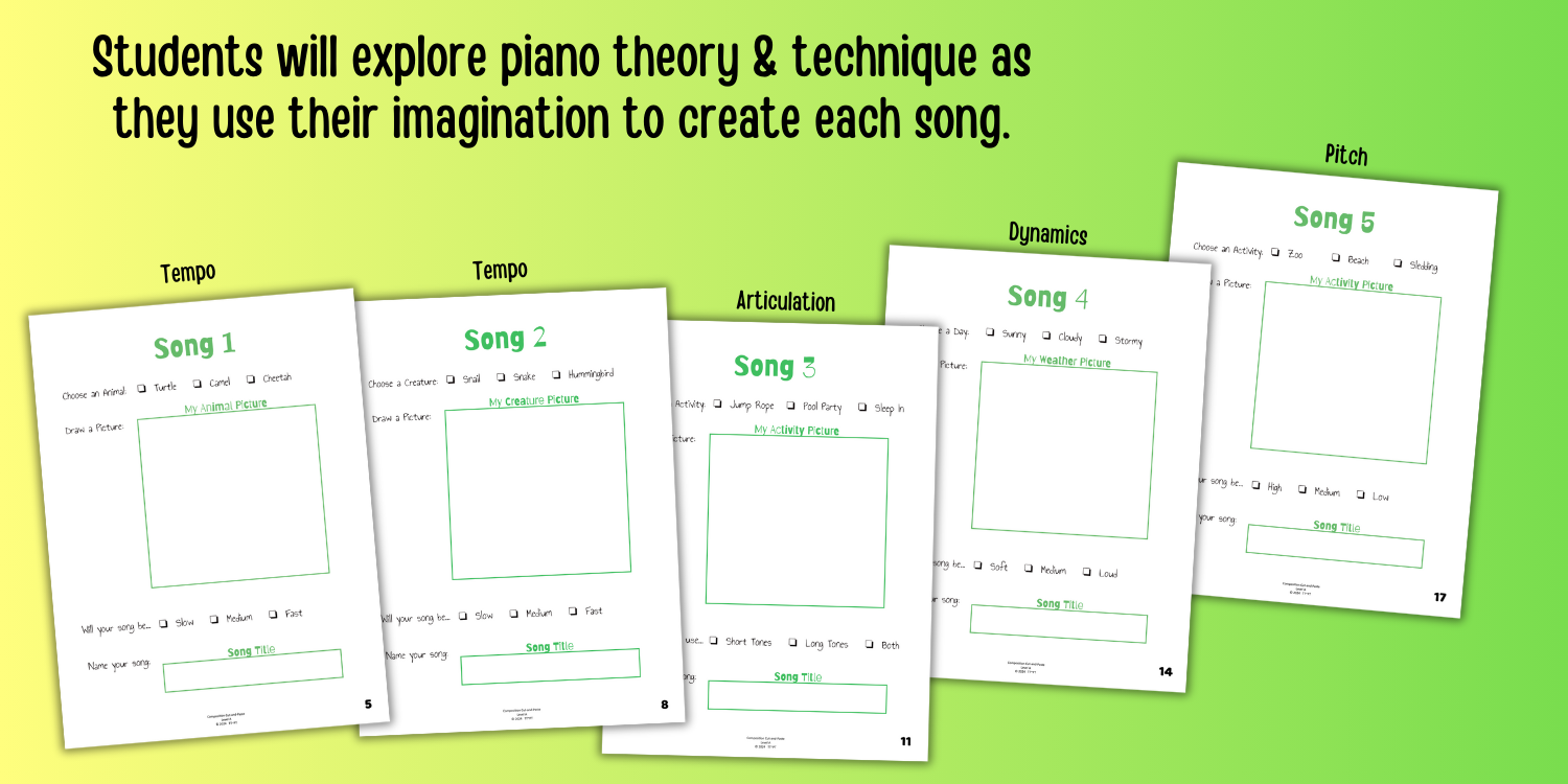 A full-year, creativity-first piano composition curriculum, from pre-reading beginners to early intermediate students.