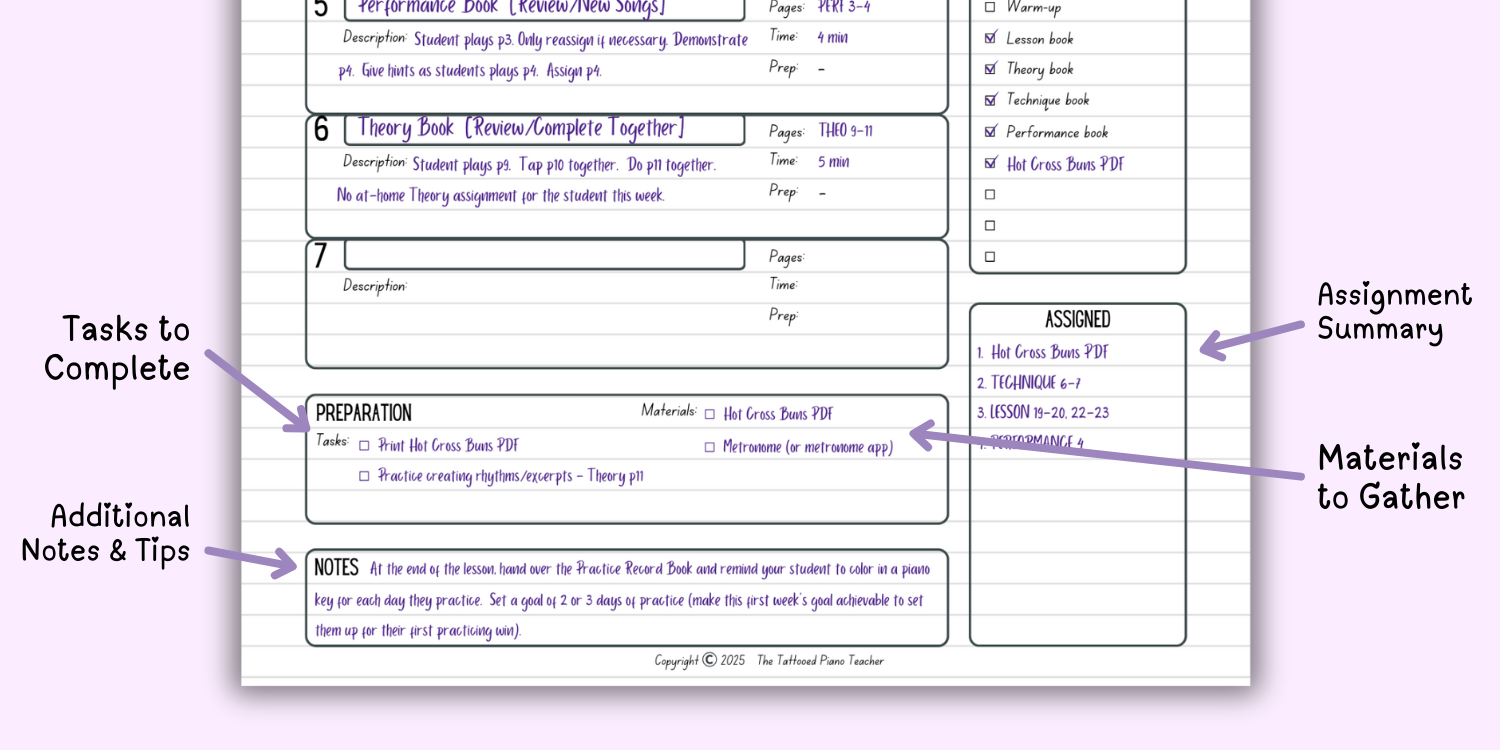 ✅ 6 one-page weekly lesson plans (designed for 30-minute lessons)