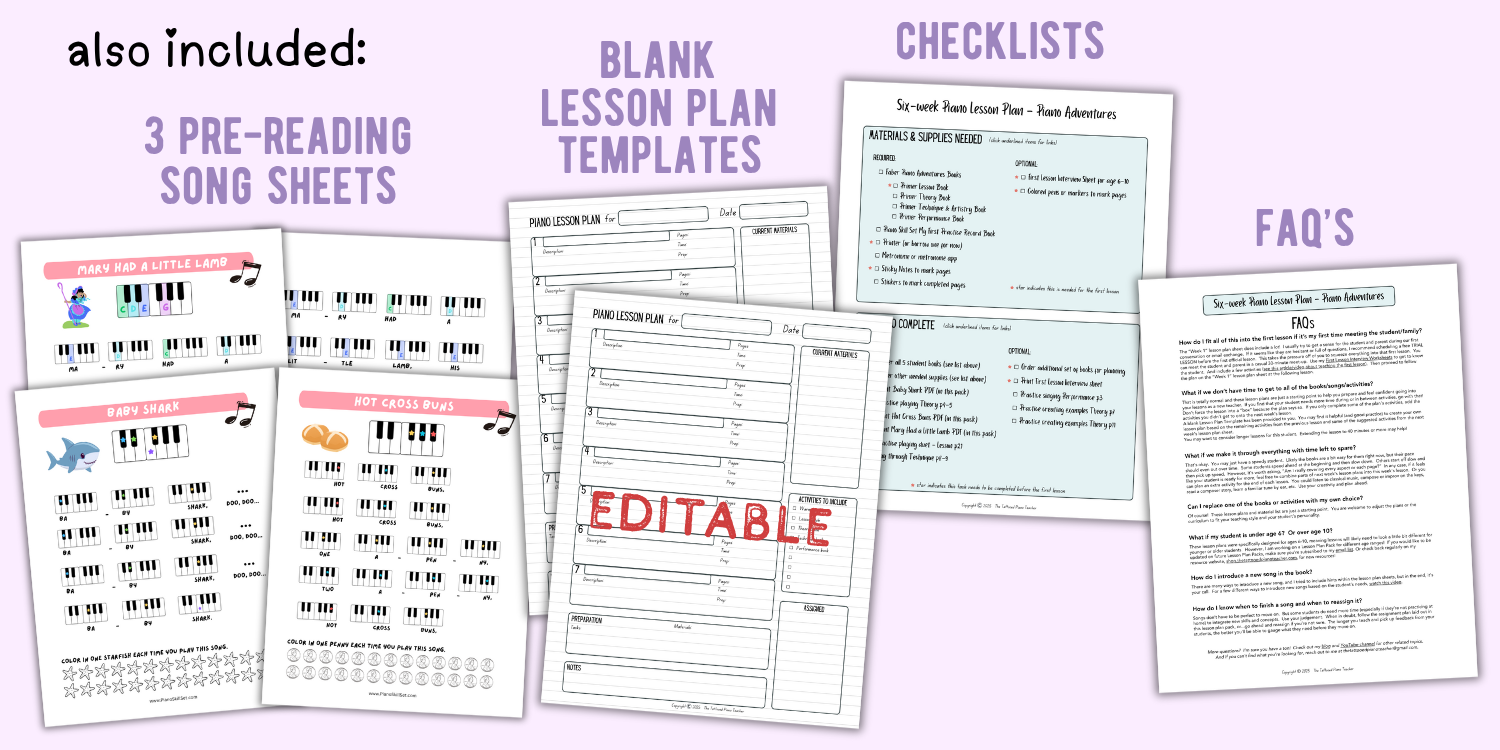 30-Minute Piano Adventures® Lesson Plan Pack for New Piano Teachers | Done-for-you 6 Weeks of Lesson Plans for Beginners