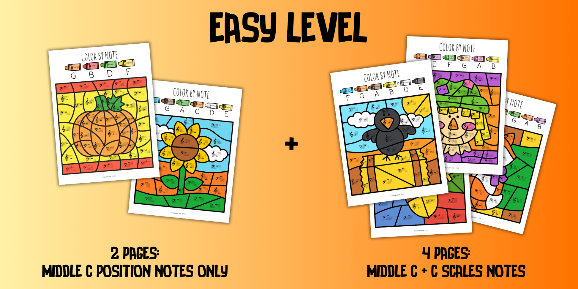 ★ Easy Level: mostly Middle C Position and C Scale notes (Bass Clef & Treble Clef Notes)