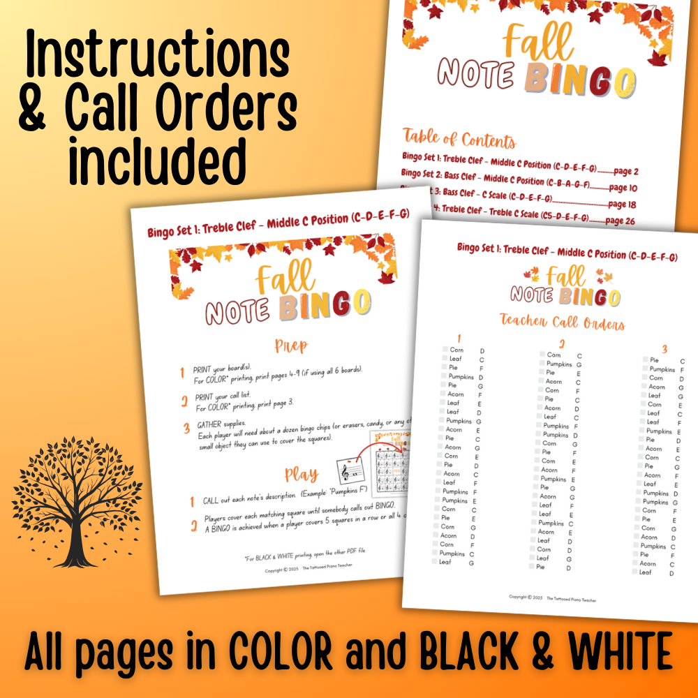 Fall Note Bingo for Music Students. Celebrate the crisp days of autumn with a music game break! Perfect for private piano instructors, group piano classes or general music classroom settings.