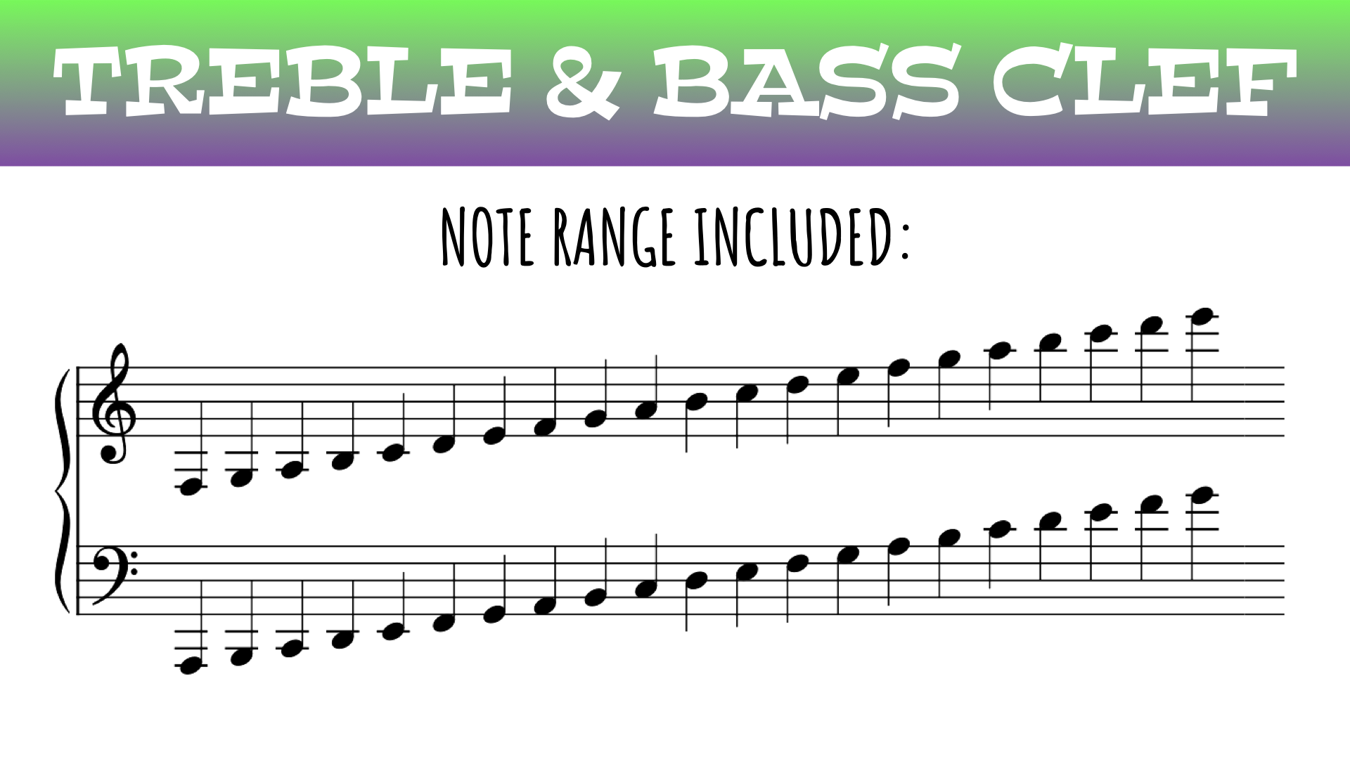 ★ 36 note naming puzzles (treble & bass, including ledger lines)