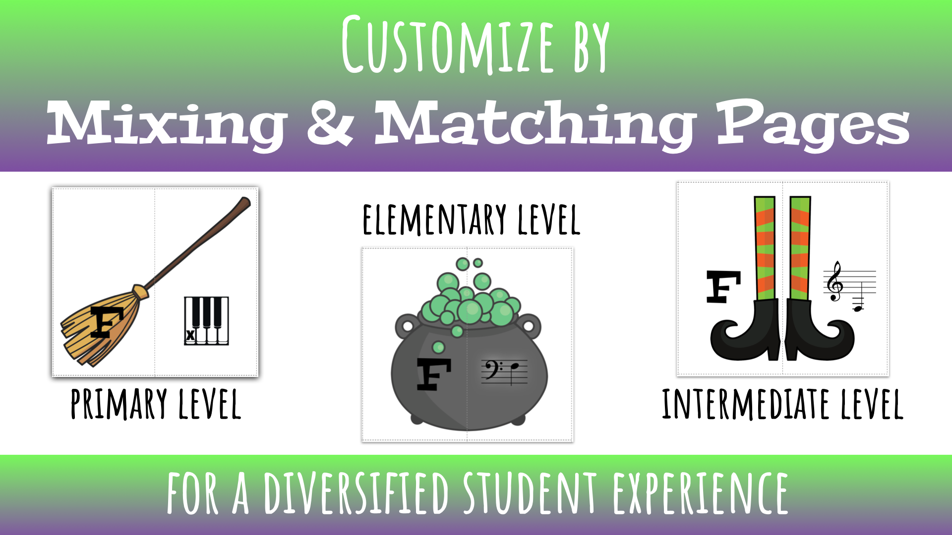 Halloween Music Theory Matching Puzzles | Notes, Intervals, Piano Keys, Symbols Flashcards