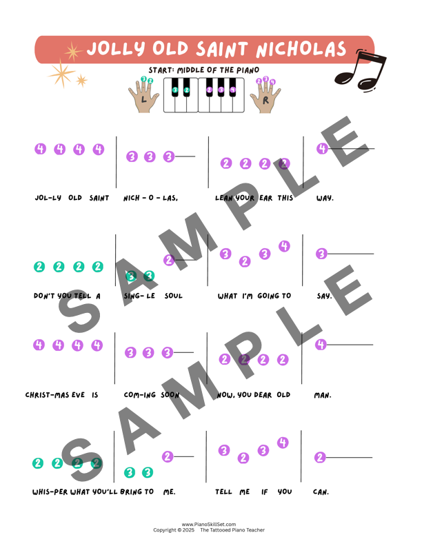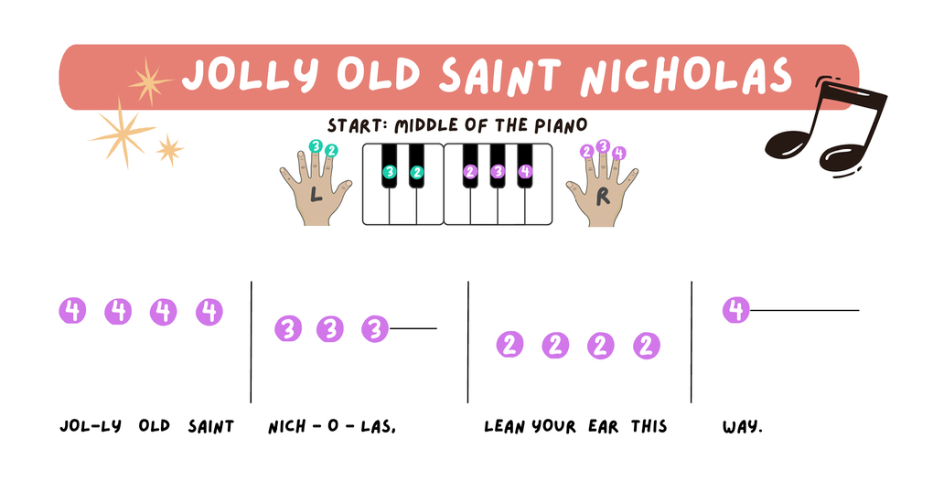 Jolly Old Saint Nicholas - Very Early Elementary Piano Solo Sheet Music (Pre-Reading Christmas)