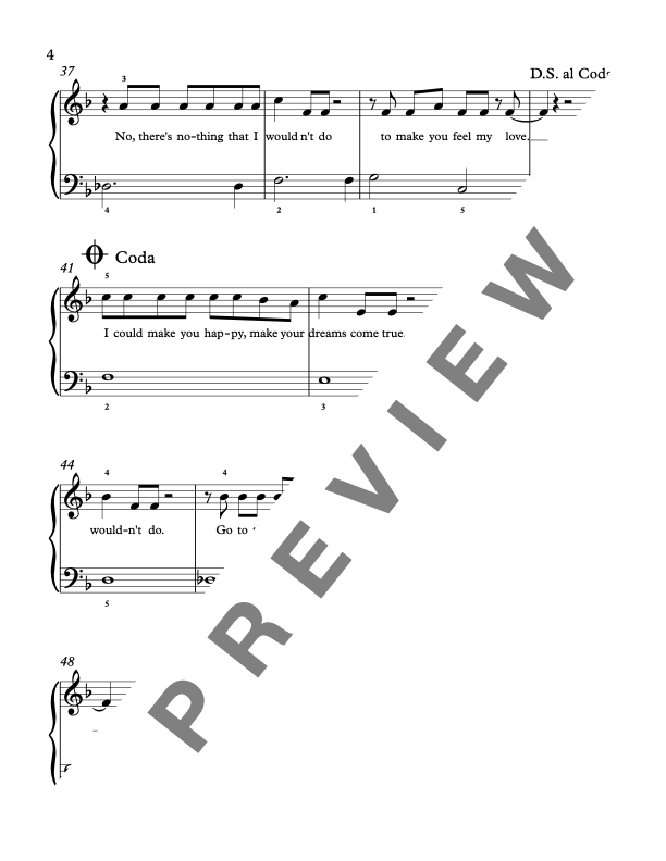 This is a late elementary solo piano arrangement of Make You Feel My Love, originally composed by Bob Dylan, recorded by such greats as Billy Joel. This arrangement is closest to Adele's 2008 version of the song. It has been simplified to F major (1 flat).