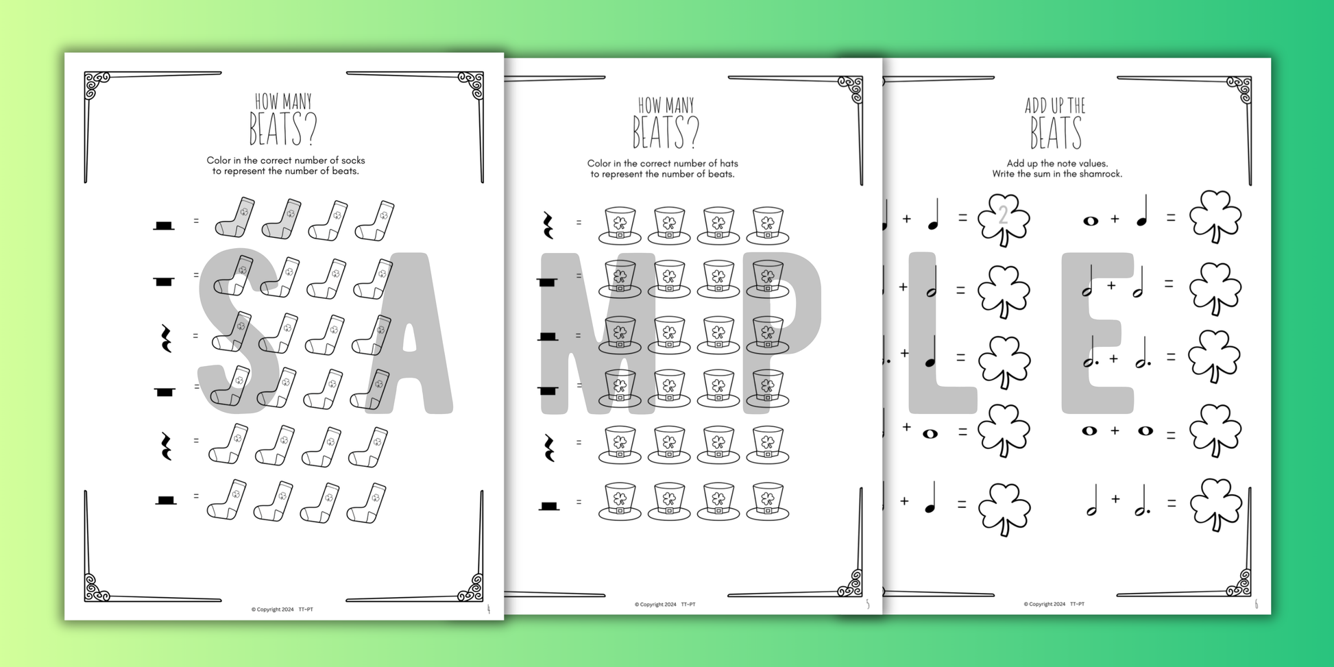 St. Patrick's Day MUSIC MATH Music Worksheets