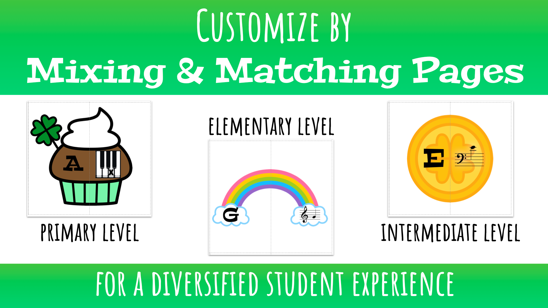 St Patricks Day Music Theory Matching Puzzles | Notes, Intervals, Piano Keys, Symbols Flashcards