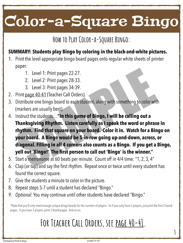 ★ Level 3: 6 unique bingo boards featuring just rhythms (included in color and black & white)