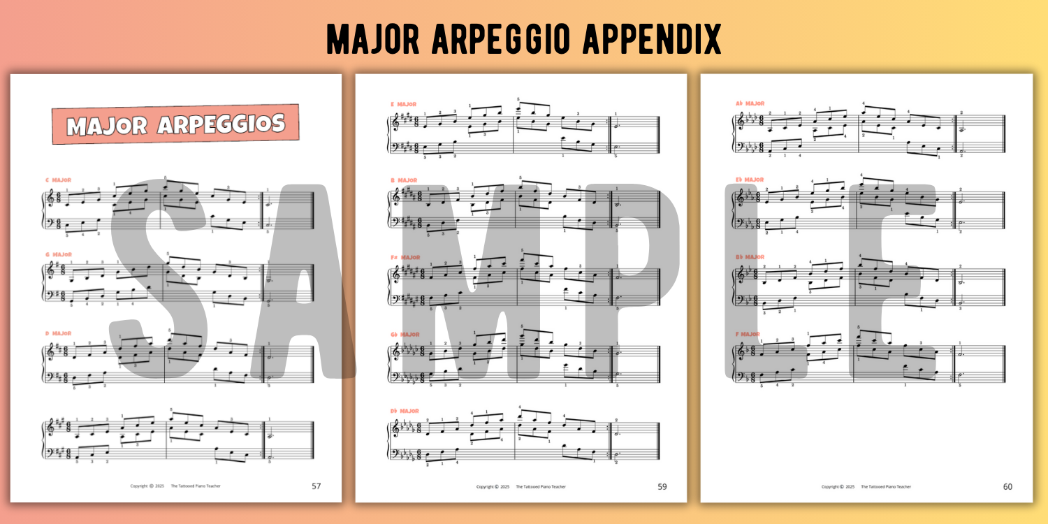 And note that the Appendices include ALL MAJOR AND MINOR SCALES & ARPEGGIOS IN CIRCLE OF 5THS ORDER and in their key signature!