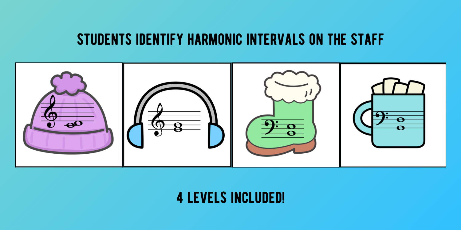 Music Theory Game for Piano Students | Harmonic Intervals on the Staff | Skips & Steps | Winter Theme for January