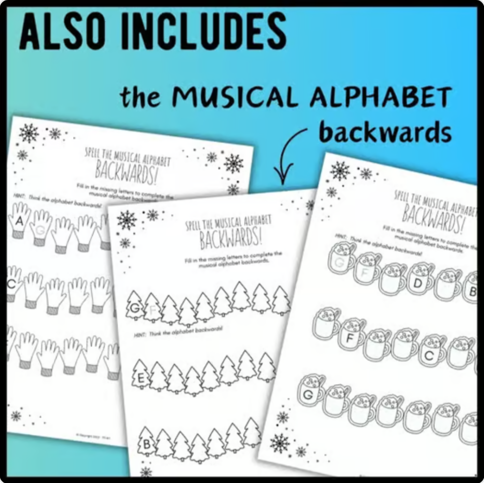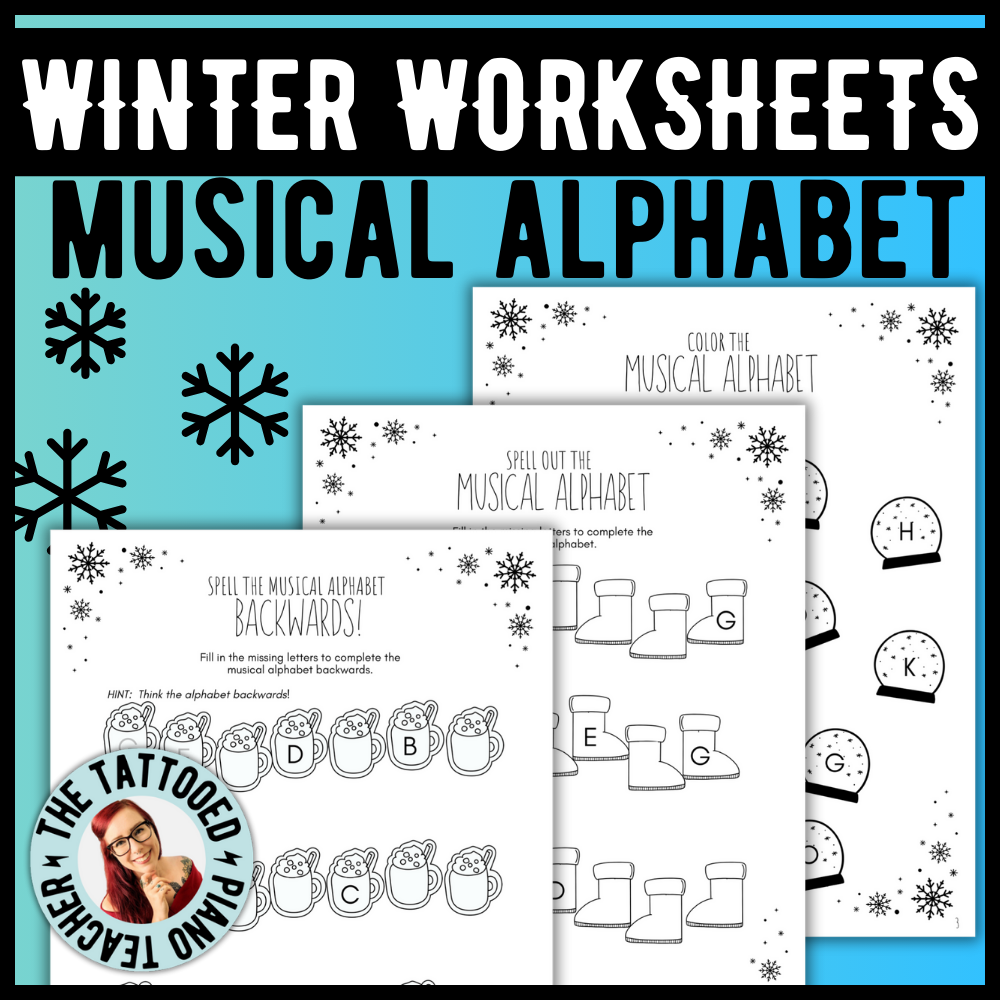 Music Theory Worksheet Pack | Musical Alphabet | Pre-reading | Winter Theme for January & February